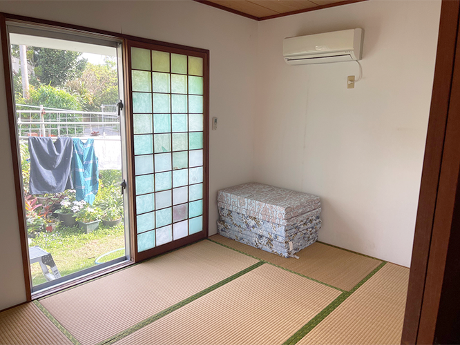 古宇利島の隣「屋嘉地島」にある1棟貸の宿です。2階建てで和室が2部屋、洋室が2部屋ございます。
